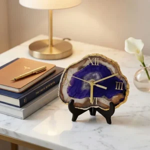 A handcrafted stone desk clock is more than a timepiece it symbolizes presence, ambition, and timeless elegance. Its rich agate textures and gold accents make it a functional statement piece.