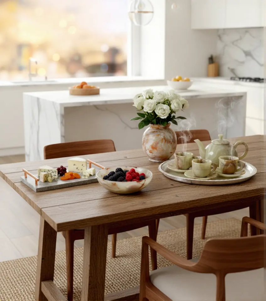 Designed for everyday use, these accents offer durability, unique natural patterns, and timeless appeal, making them small yet impactful elements that elevate the home’s ambience while leaving guests with an impression of intentional, sophisticated styling.