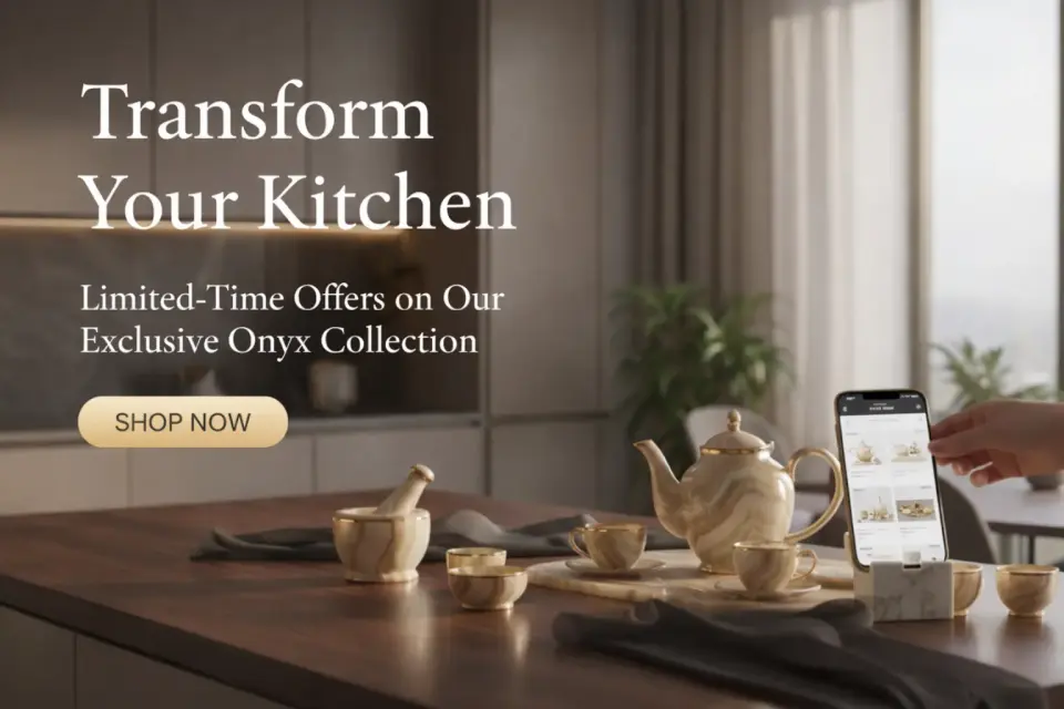 Whether placed on a kitchen island, open shelving, or a breakfast counter, onyx pieces add sculptural elegance while remaining practical for everyday use. When styled thoughtfully, these premium kitchen accessories enhance not just the look of your kitchen, but the entire experience of using it.