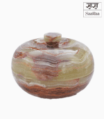 Elevate your decor with the SaaRaa-Fiction Sliced Apple Onyx Jar. Handcrafted from premium onyx, this unique jar features a sliced apple design with a midpoint lid, perfect for stylish storage.