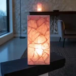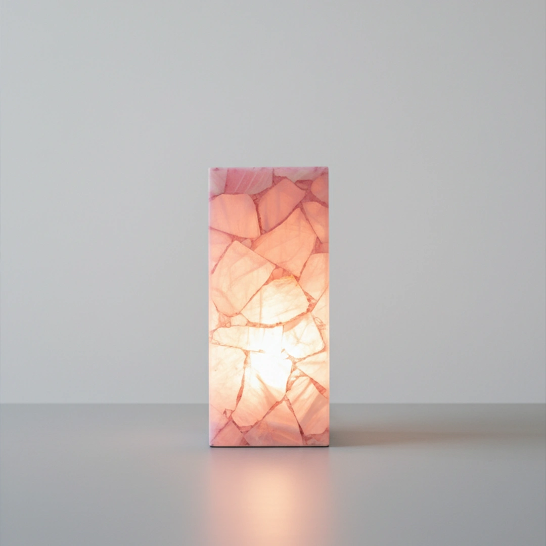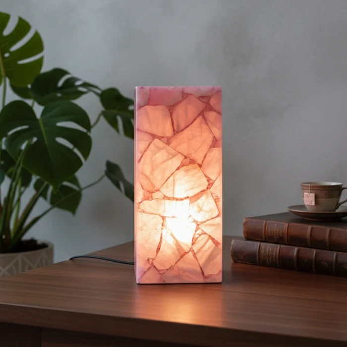 Rectangular rose quartz lamp for warm illumination and positive energy