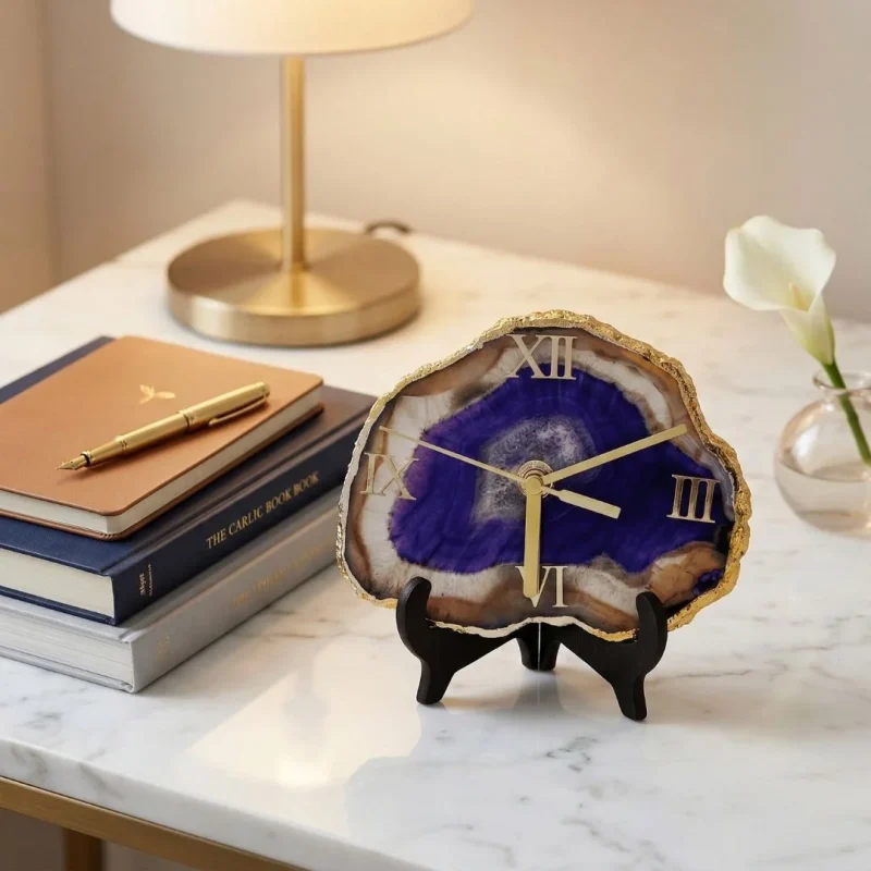A handcrafted stone desk clock is more than a timepiece it is a symbol of presence, ambition, and timeless elegance. Gifting this to the woman you adore reflects admiration for her dedication and the meaningful moments she creates every day. With its rich agate textures and gold detailing, it serves as both a functional accent and a statement piece that beautifully elevates the home décor or workspace.