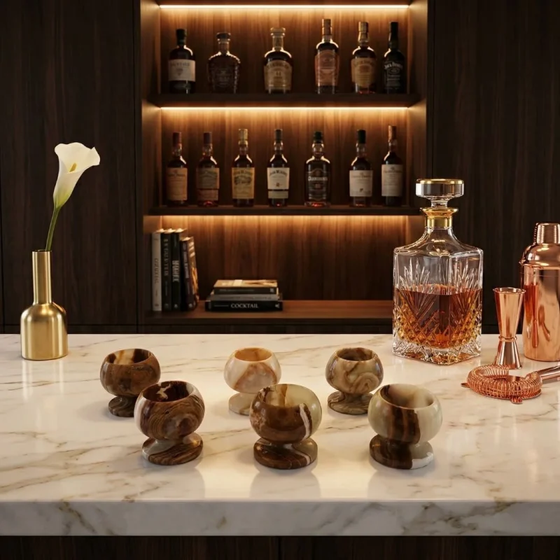 Luxury shot glasses are more than bar accessories they are a reflection of bold taste and refined entertaining. Gifting these to the woman you adore celebrates her vibrant spirit and her love for memorable moments. Crafted in natural stone, they add character, sophistication, and also elevate the home décor with their distinctive texture and artisanal finish.