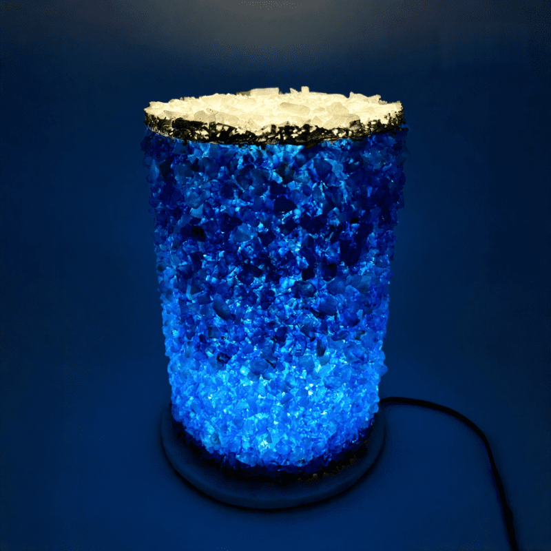 Blue Agate carries calming oceanic hues and soothing energy. This LED lamp is both a statement décor piece and a functional gift.